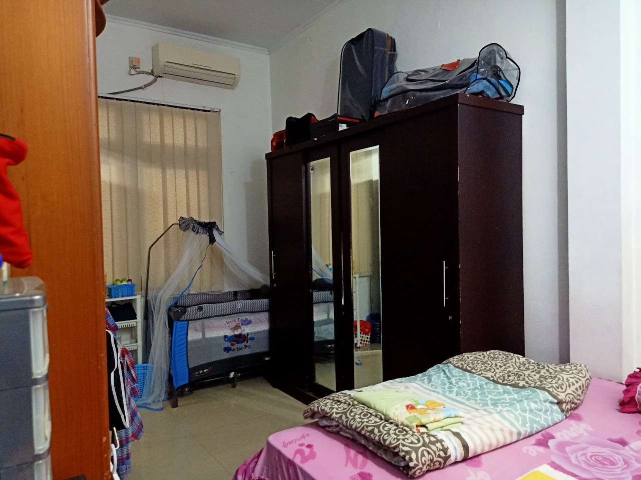 Lantai 2 : ada 3 kamar tidur + 1 gudang/ ruang kerja, 1 kamar mandi luar